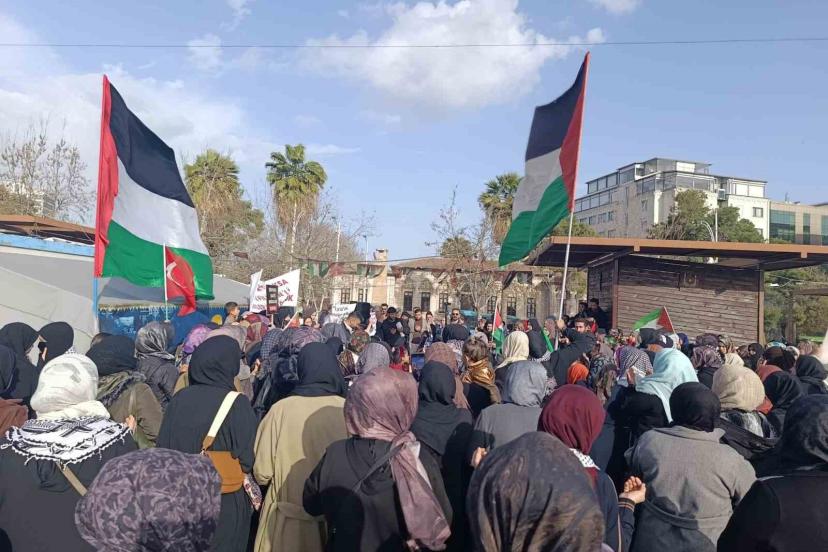Kadınlar adına açıklama yapan Nirgül Kaşıkçı, herkesi Gazze halkına desteğe davet etti. Kaşıkçı, yaptığı açıklamada, "27 Şubat tarihinden beri Kudüs’teki Hristiyan ve Müslüman ibadethaneleri kapatılmıştır. Avrupa’nın baskısı sonuç vermiş Hristiyan ibadethaneleri açılmıştır ancak Mescid-i Aksa 36 gündür hala kapalıdır. Bu kabul edilemez bir hukuksuzluk, inanç özgürlüğüne ağır bir darbedir. Kudüs’ün kalbinde yer alan Müslümanların üç kutsal mekanından biri olan Mescid-i Aksa’nın hak gaspına derhal son verilmesi ve kutsal mekanlara erişiminin sağlanması şarttır. İşgalci bununla da kalmayıp sadece Filistinli Müslüman oldukları için keyfi tutuklama yaptığı bu insanların ölüm fermanlarını nefretle onaylamıştır. İdam cezası hiçbir şartta adaletin yerine getirilmesi için meşru bir araç olamaz. Bu sistematik yok etme politikasını reddediyoruz. Tüm uluslararası kurumları bu hukuksuzluğa sessiz kalmamaya derhal harekete geçmeye çağırıyoruz. İdam kararlarını ve ibadet yasağını durdurmak için diplomatik ve ekonomik tüm yaptırımların derhal hayata geçirilmesi gerekmektedir. Bu konuda her alanda üzerimize düşeni yapmaya hazırız" dedi.