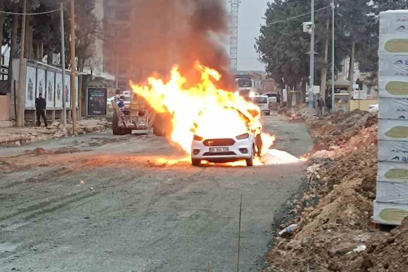 Hatay’da şantiye sahasında yürütülen çalışmalar sırasında doğalgaz borusunun zarar görmesi sonucu yaşanan sızıntı park halindeki araca sıçradı. Alevlerin sıçradığı hafif ticari araç yanarak kullanılmaz hale geldi.