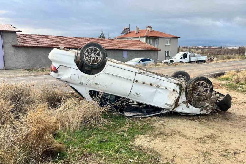 Afyonkarahisar’da kontrolden çıkarak yol kenarındaki şarampole girerek devrilen otomobilin sürücüsü yaralandı.