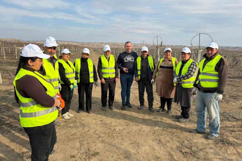 Gürcistan ve Ermenistan sınırına yakın konumda bulunan Ağstafa rayonundaki bin 600 dönümlük alanda yetiştirilen Red Globe, Sultaniye çekirdeksiz ve Merlot cinsi üzüm bağlarında düzenlenen eğitimlerde, Azerbaycanlı kadın ve erkeklerden oluşan 30 kişilik işçi grubuna uygulamalı olarak budama teknikleri anlatıldı.