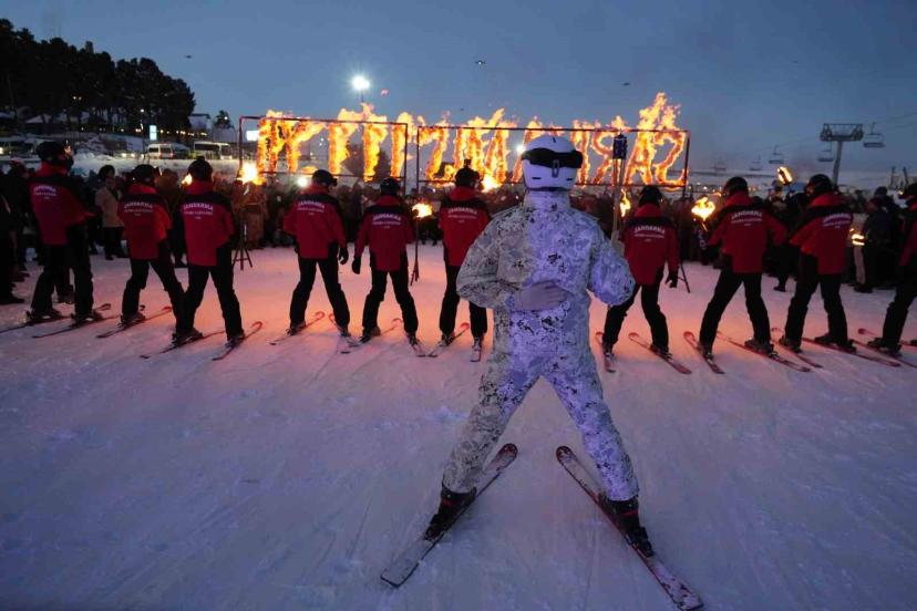 Kars’ta Sarıkamış Harekatı’nın 111. yılı dolayısıyla Jandarma Arama Kurtarma (JAK) timleri meşaleli kayak gösterisi yaptı.