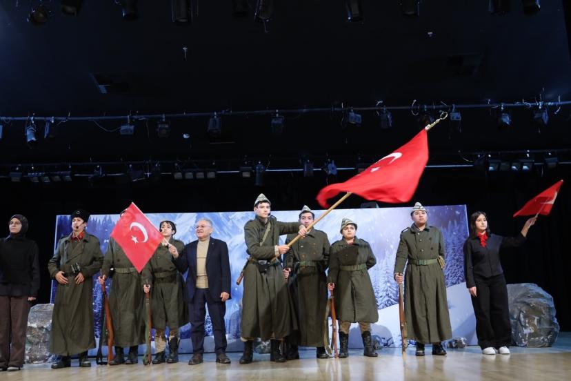 Genç KAYMEK Gençlik Merkezleri’nin millî ve manevi değerleri yaşatma misyonuna dikkat çeken Başkan Büyükkılıç, gençlerin tarih bilinciyle yetişmesinin önemine vurgu yaparak bu tür programların gelecek nesiller için büyük bir kazanım olduğunu söyledi. Anma programında Sarıkamış temalı şiir konseri, müzik konseri ve ’Karın Beyaz Sessizliği’ adlı tiyatro gösterisi sahnelendi. Sarıkamış’ta yaşanan acı, fedakârlık ve kahramanlıkların sahneye taşındığı gösteriler izleyenleri derinden etkiledi. Başkan Büyükkılıç’a programda, Genel Sekreter Yardımcıları Fatih Temeltaş ve Ufuk Sekmen ile daire başkanları da eşlik etti.