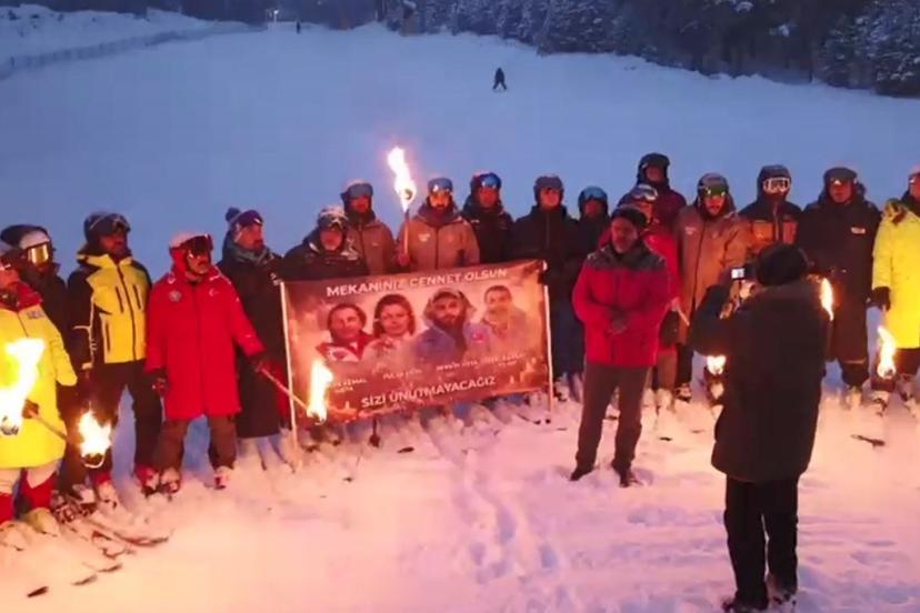 Sarıkamışlı kayakçılar, ellerinde meşalelerle pistlerden aşağıya inerek Bursa’da hayatını kaybeden arkadaşlarını andı, yapılan açıklamaların ardından arkadaşları için dua etti.