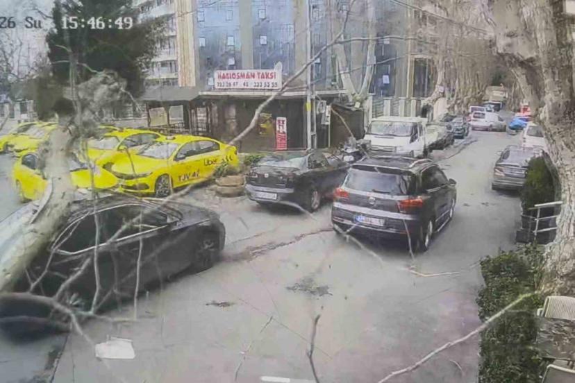 Sarıyer’de kuvvetli rüzgarın etkisiyle devrilen ağaç, park halindeki otomobilin üzerine düştü. Olayda yaralanan olmazken, ağacın devrilme anı kameraya yansıdı.