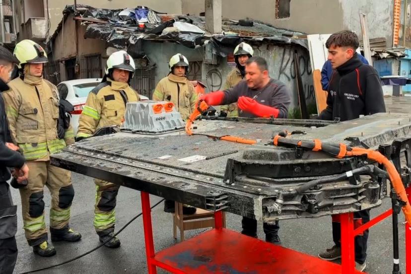 İstanbul Sarıyer’de bir oto tamir servisinde elektrikli bir aracın batarya bölümünden yükselen duman paniğe neden oldu. İhbar üzerine olay yerine İtfaiye, polis ve sağlık ekipleri sevk edildi. İtfaiyenin müdahalesi sırasında bataryada küçük çaplı parlama meydana geldi.