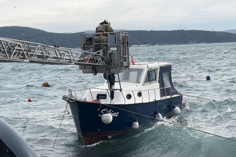 Sarıyer’de lodos nedeniyle teknede mahsur kalanları itfaiye kurtardı