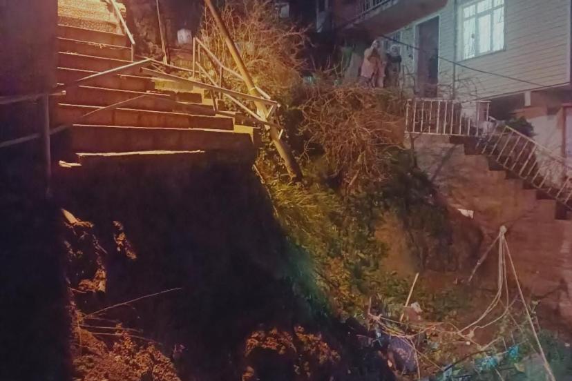 Sarıyer’de yağış nedeniyle bina yanındaki merdivenler çöktü: Mahalleli sokağa döküldü