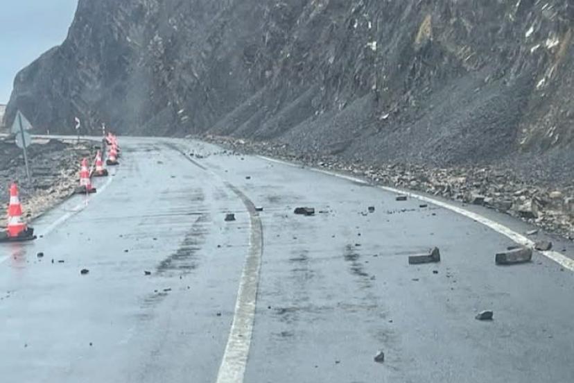 Yetkililer, muhtemel kaya düşmelerine karşı sürücülerin dikkatli seyretmeleri konusunda uyarıda bulundu.