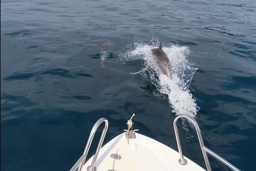 Saros Körfezi’nde yunuslar tekne ile yarıştı