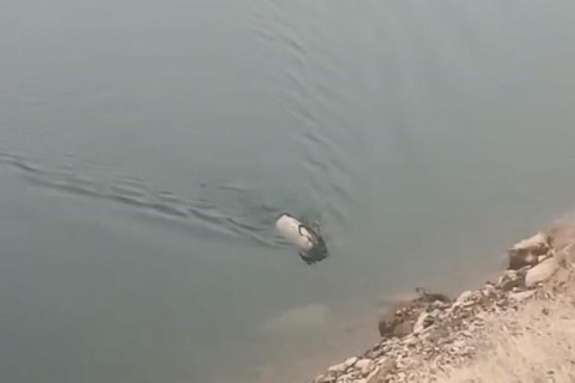Sarp kayalıkların ustası baraj gölünde yüzerken görüldü