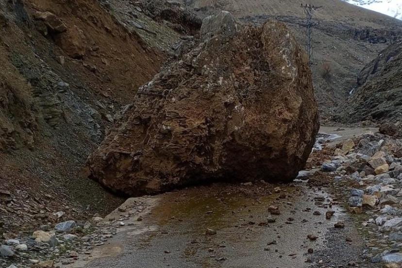 Sason’da yamaçtan düşen kaya, köy yolunu ulaşıma kapattı