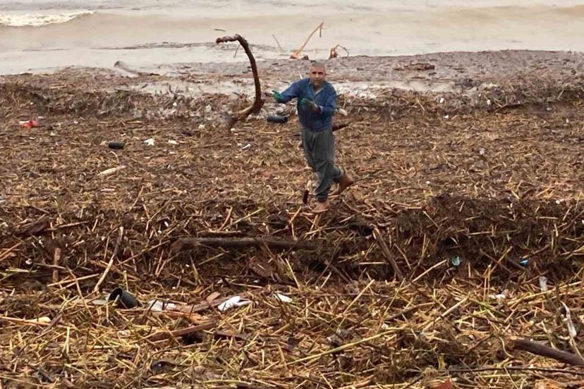 Sel sonrası deniz kahverengi oldu, sahiller odun doldu