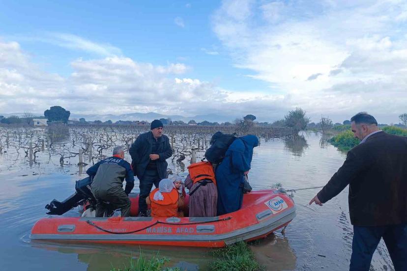 Manisa’da 2 gün boyunca etkili olan sağanak yağışlar nedeniyle Gediz Nehri’nde taşkınlar meydana geldi. Özellikle Yunusemre ve Şehzadeler ilçelerinde bazı tarım arazileri ve yerleşim alanları sular altında kalırken, bölgedeki 10 kişilik bir aile yükselen su seviyesi nedeniyle mahsur kaldı. İhbar üzerine bölgeye Manisa İl Afet ve Acil Durum Müdürlüğü (AFAD) ekipleri ile birlikte itfaiye ve sağlık ekipleri sevk edildi. Ekipler, suyun hızla yükselmesi ve karadan ulaşımın mümkün olmaması nedeniyle kurtarma çalışmalarını botlarla gerçekleştirdi. Zamanla yarışan ekipler, aralarında 1 bebek, 1 çocuk ve 3 kadının da bulunduğu toplam 10 kişiyi güvenli şekilde bulundukları noktadan tahliye etti.