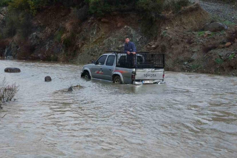 Etkili olan selle birlikte yolun suyla kaplandığını ifade ederek, " Gördüğünüz bu yol yağmurdan sonra böyle oldu. Yağmur yüzünden kayalar devrildi. Ben de ahırı kontrol etmeye geldim. Aracım mahsur kaldı. Sağ olsun traktör beni kurtardı. Geçen sene öyle değildi bu sene çok yağmur yağmasıyla birlikte bu aralar böyle oldu" dedi.