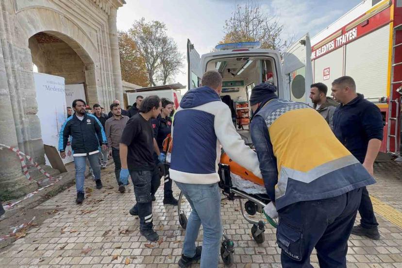 Edirne’de Selimiye Camii’nde yürütülen restorasyon çalışmaları esnada yüksekten düşen işçi yaralandı.