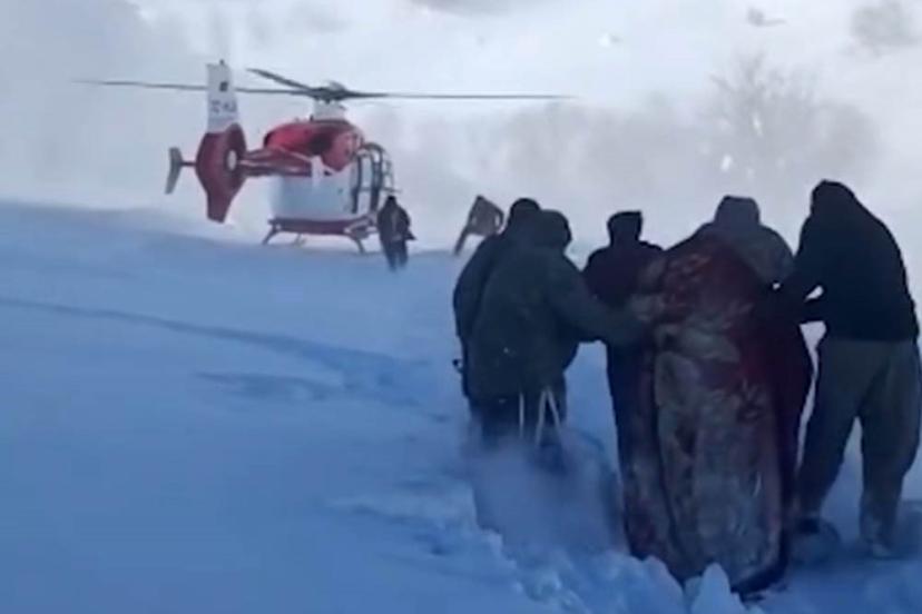 Hakkari’nin Şemdinli ilçesinde kar ve tipi nedeniyle yolu kapanan Alan köyünde sancıları başlayan hamile kadın, Sağlık Bakanlığına ait ambulans helikopterin dondurucu soğuk ve sarp araziye göğüs geren operasyonuyla hastaneye ulaştırıldı.