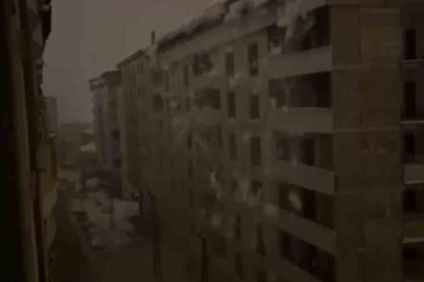 Hakkari’nin Şemdinli ilçesinde bir binanın çatısında biriken dev kar kütlesinin elektrik direklerinin üzerine düşme anı güvenlik kameralarına yansıdı. Şebekenin hasar görmesi nedeniyle bir mahallede elektrik kesintisi yaşandı.