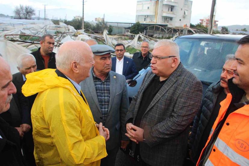 Türkiye Ziraat Odaları Birliği Genel Başkanı Şemsi Bayraktar, Antalya’nın Kumluca ilçesinde sel ve hortumdan zarar gören bölg...