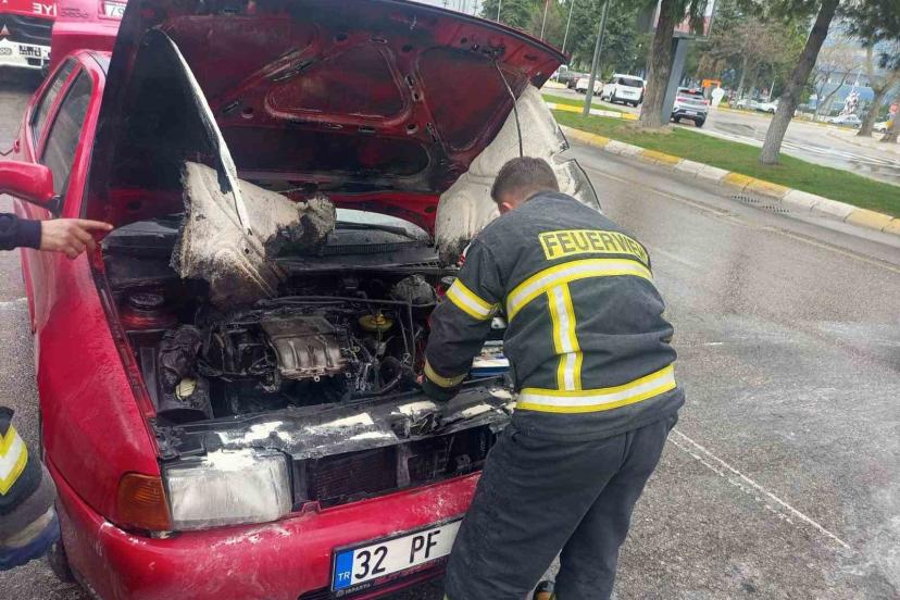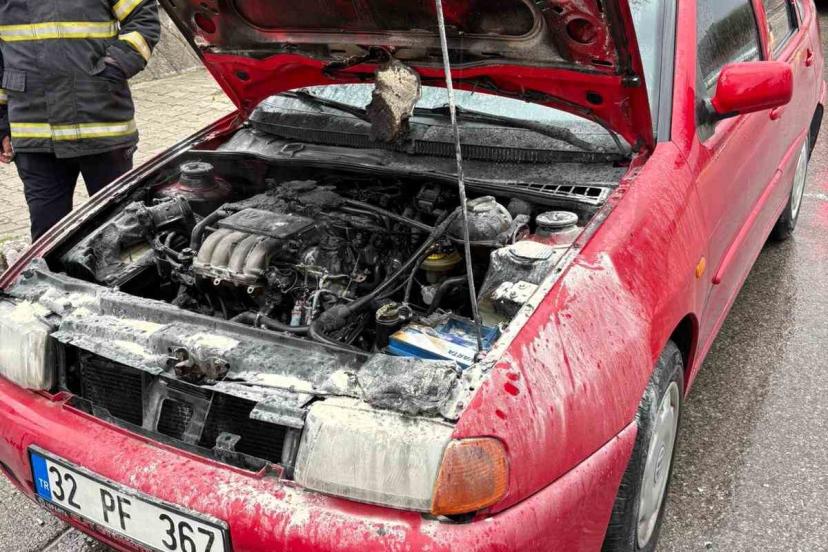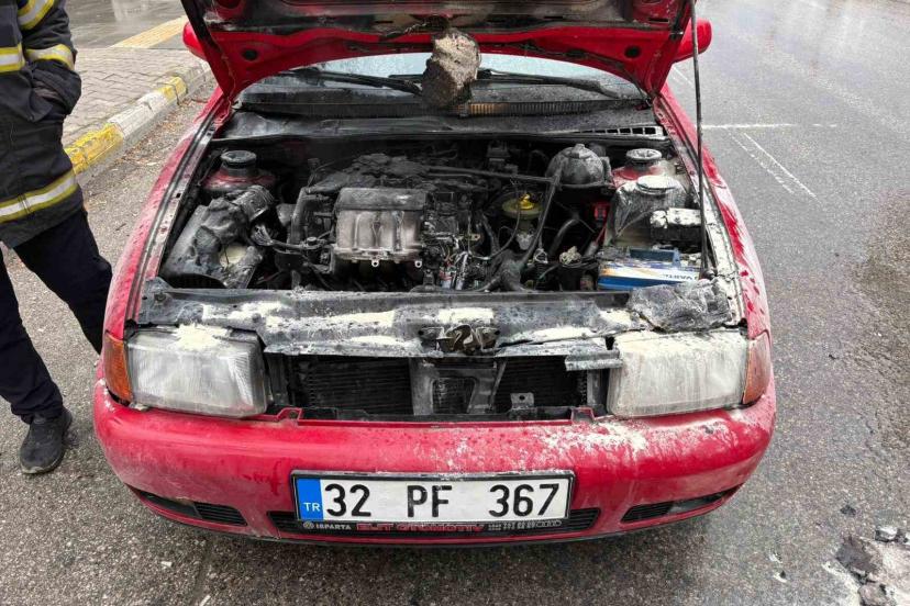 Karayolları Kavşağı’nda Erkan A. yönetimindeki 32 PF 367 plakalı Volkswagen marka otomobil, seyir halindeyken henüz belirlenemeyen bir nedenle motor kısmından yanmaya başladı. Alevleri fark eden sürücü hemen aracı durdurarak durumu 112 Acil Çağrı Merkezi’ne bildirdi. İhbar üzerine bölgeye polis ve itfaiye ekipleri sevk edildi. Olay yerine gelen itfaiye ekipleri, yangına müdahale ederek alevleri kontrol altına aldı. Yangında herhangi bir yaralanma ya da can kaybı yaşanmazken, otomobilde büyük çapta maddi hasar oluştu. Yangının çıkış nedeninin belirlenmesi için inceleme başlatıldı.