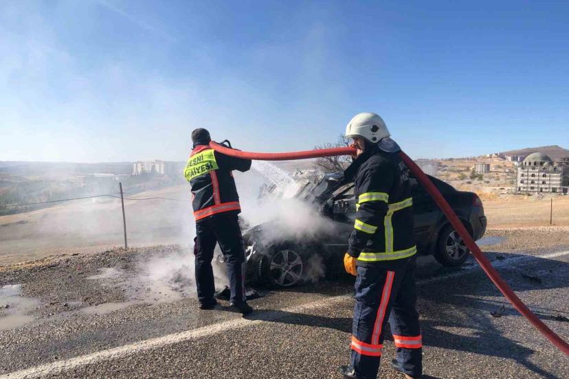 Adıyaman’ın Besni ilçesinde seyir halindeki bir otomobil alev alarak yandı.
