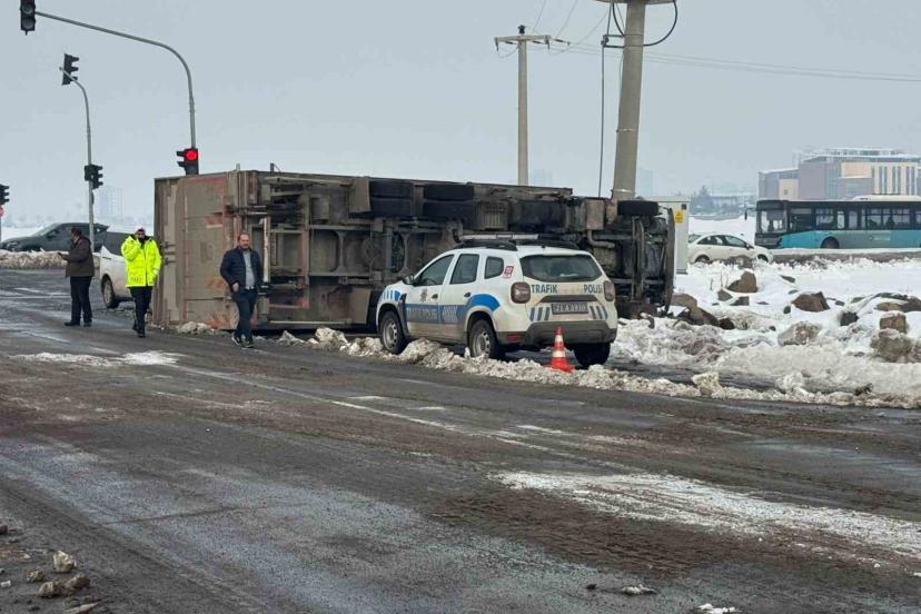Edinilen bilgilere göre, ilçenin Talaytepe Mahallesi Sultan Sasa Bulvarı’nda seyir halindeki tır, kayganlaşan yolda sürücüsünün direksiyon hakimiyetini kaybetmesi sonucu devrildi. İhbar üzerine olay yerine polis ve sağlık ekibi sevk edildi. Sürücü, sağlık ekiplerinin ilk müdahalesinin ardından hastaneye sevk edildi.