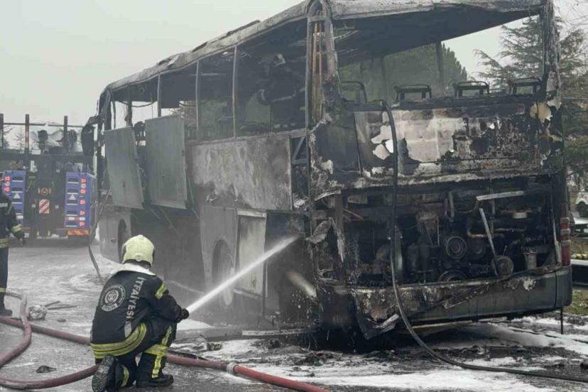 Kocaeli’de yolcunun yanık kokusunu fark ederek durumu görevlilere bildirmesi, şehirler arası yolcu otobüsünde yaşanabilecek faciayı önledi. Yolcuların tahliye edilmesinin ardından çıkan yangında otobüs hurdaya döndü.