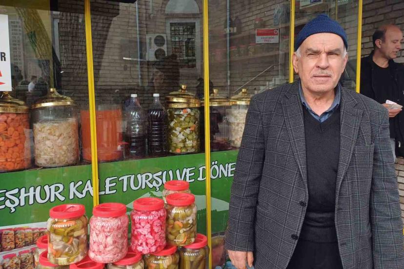 Kayseri’de 35 yıl önce seyyar satıcı olarak döner ve turşu satarak mesleğe başlayan adam, 26 yıldır kendi dükkanında müşterilerine hizmet veriyor.