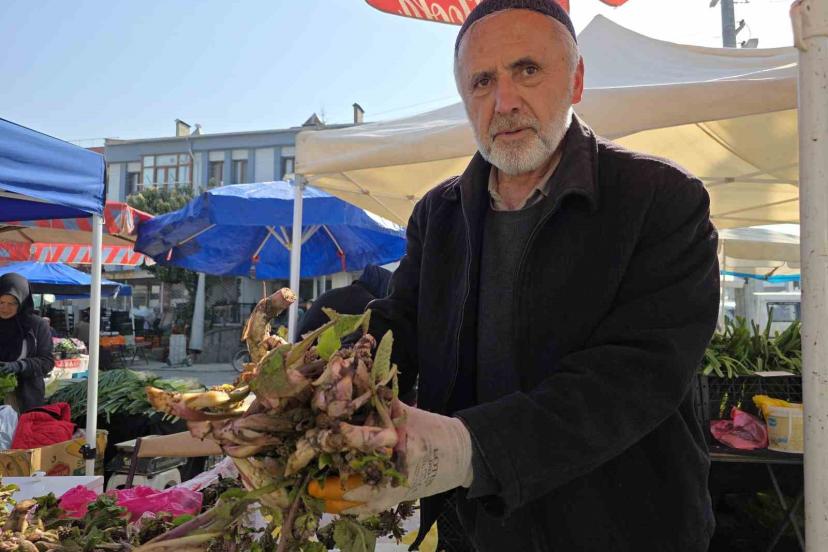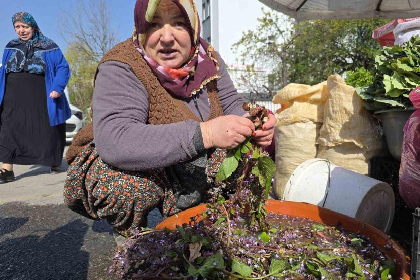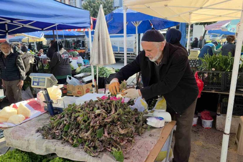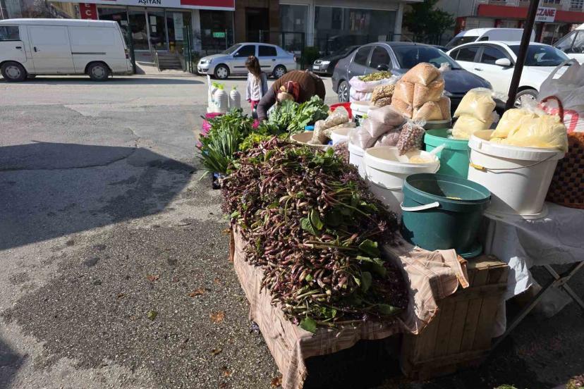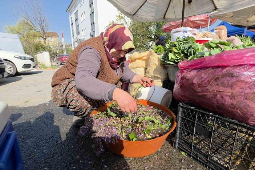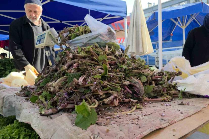 Düzce’nin yüksek kesimleri ve dik yamaçlarında bahar aylarında kendiliğinden yetişen kaldirik otu, köylü pazarlarındaki tezgahlarda yerini aldı.