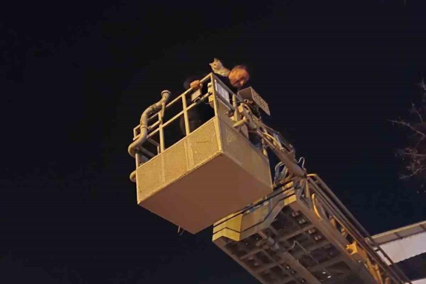 Siirt’in Kurtalan ilçesinde ağaçta mahsur kalan bir kedi, itfaiye ekiplerinin müdahalesiyle bulunduğu yerden kurtarıldı.