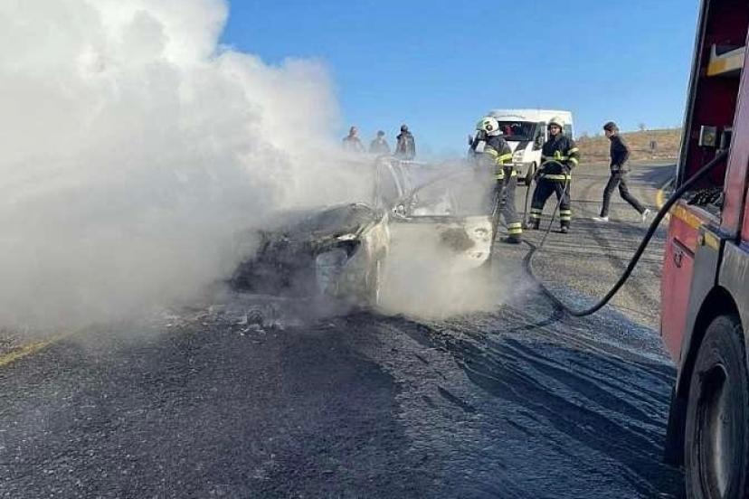Edinilen bilgilere göre, merkeze bağlı Kalender köyü mevkisinde Mahmut Gürgen’e ait otomobil, seyir halindeyken aniden alev aldı. Kısa sürede büyüyen yangın aracı tamamen sardı. Sürücü, eşi ve iki çocuğu, alevler büyümeden önce araçtan çıkarak canlarını kurtardı.