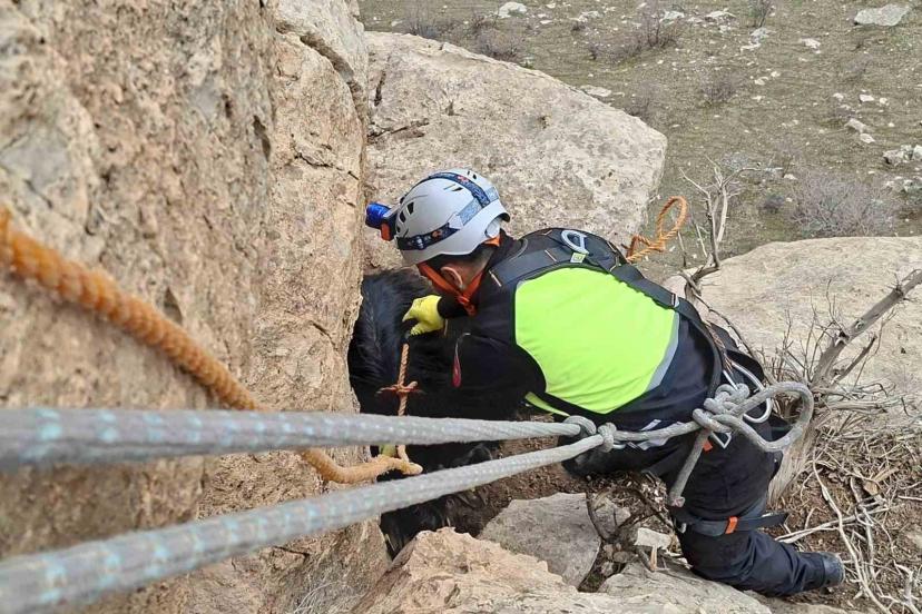 Siirt’in Eruh ilçesinde dağlık bölgede üç gündür mahsur kalan keçi, dağcılar tarafından kurtarılarak sahibine teslim edildi.