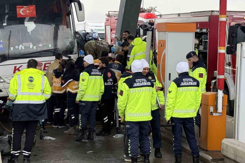 Edinilen bilgiye göre kaza saat 16.00 sıralarında İstanbul Silivri Kuzey Marmara Otoyolu Kınalı gişeler mevki İstanbul istikametinde meydana geldi. Tekirdağ’dan İstanbul’a giden Kale seyahate ait yolcu otobüsüyle, otomobil bilinmeyen bir nedenle çarpıştı. Kazada her iki araç da gişede sıkıştı. Otobüste bulunan yolcular tahliye edilerek başka bir araçla gönderilirken, olay yerine çok sayıda itfaiye ve sağlık ekibi sevk edildi. Kazada yaralananlar olduğu öğrenilirken, otomobilde sıkışanlar için çalışma başlatıldı. İtfaiye ekiplerinin kurtarma çalışmaları sürerken, kazaya karışan araçlar havadan görüntülendi.