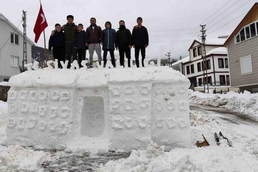 Sivas’ın Koyulhisar ilçesi Kızılelma köyünde Adem Soylu, Kız kulesine gidemeyen çocuklar için köyde kardan oluşturduğu kız kulesiyle gündeme gelirken, ayrı ekip bu kez tarihi Sivas Valiliği Binası’nın benzerini kardan yaptı.