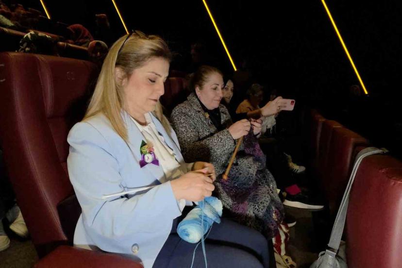 Etkinliğe katılan kadın meclisi üyeleri de ışıkları tamamen kapatılmayan salonda hem film izleyip hem de ihtiyaç sahipleri için üretim yapmaktan mutluluk duyduklarını kaydetti.