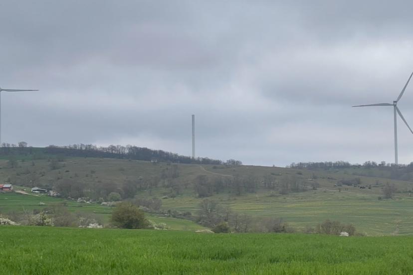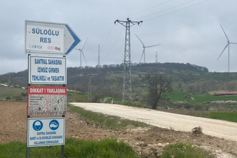 Edirne’nin Lalapaşa ilçesine bağlı Vaysal köyü kırsalında, Türkiye-Bulgaristan sınır hattında bulunan rüzgar türbinlerinden b...