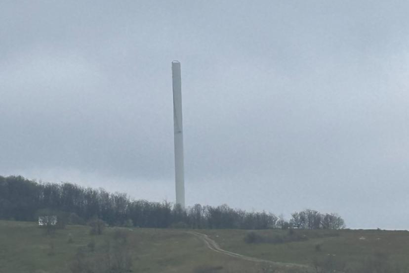 Edirne’nin Lalapaşa ilçesine bağlı Vaysal köyü kırsalında, Türkiye-Bulgaristan sınır hattında bulunan rüzgar türbinlerinden biri şiddetli rüzgarın etkisiyle parçalanarak yere düştü.