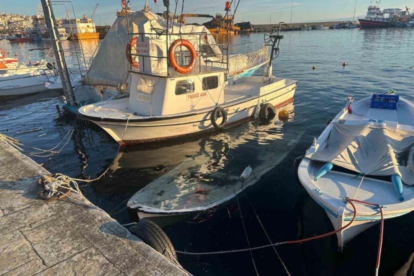 Sinop’ta limanda demirli bir kayık su alarak battı.