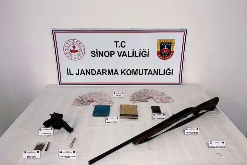 Sinop’un Gerze ilçesinde jandarma ekiplerinin düzenlediği operasyonda uyuşturucu madde, silah ve 50 bin TL ele geçirildi.