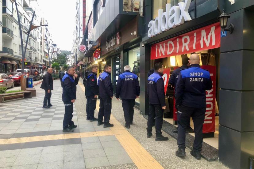 Sinop’ta zabıta ekiplerinden kaldırım işgali denetimi