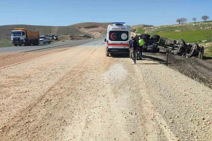 Şırnak’ta meydana gelen kazada devrilen kamyonun sürücüsü yaralandı.
