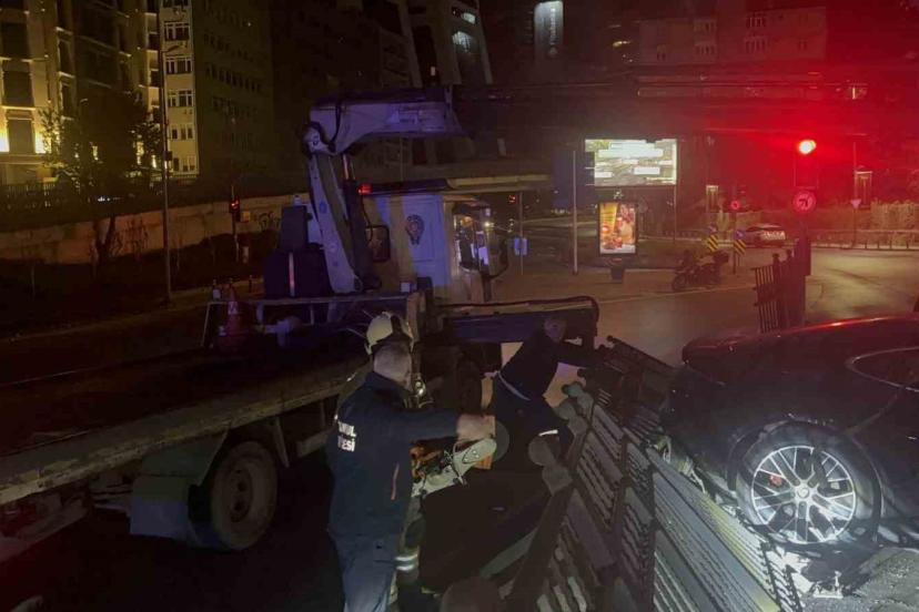 Şişli’de lüks otomobil, direksiyon hakimiyetini kaybederek bariyere çarptı. Çarpmanın etkisiyle savrulan otomobil, korkuluklara çıktı.