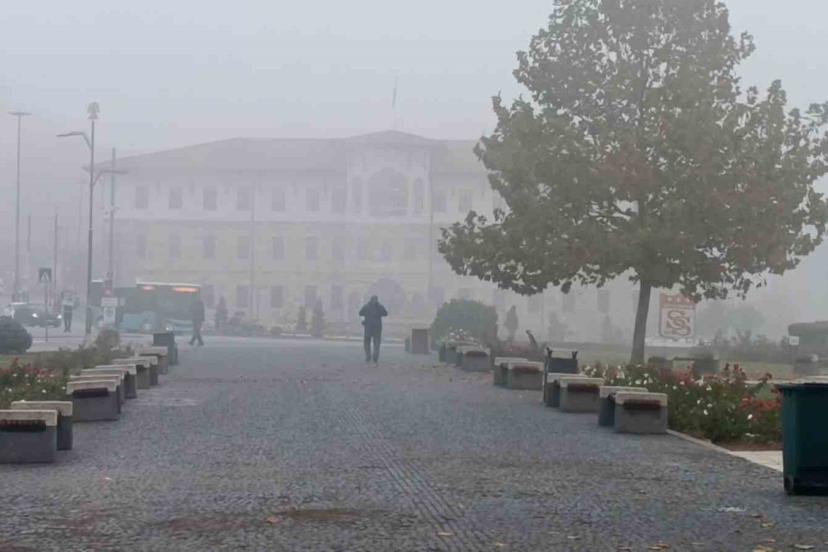 Sivas’ta sabah saatlerinden itibaren etkili olan yoğun sis, kentin üzerine adeta perde çekti. Tarihi kent meydanı sisin ardında gözden kayboldu.
