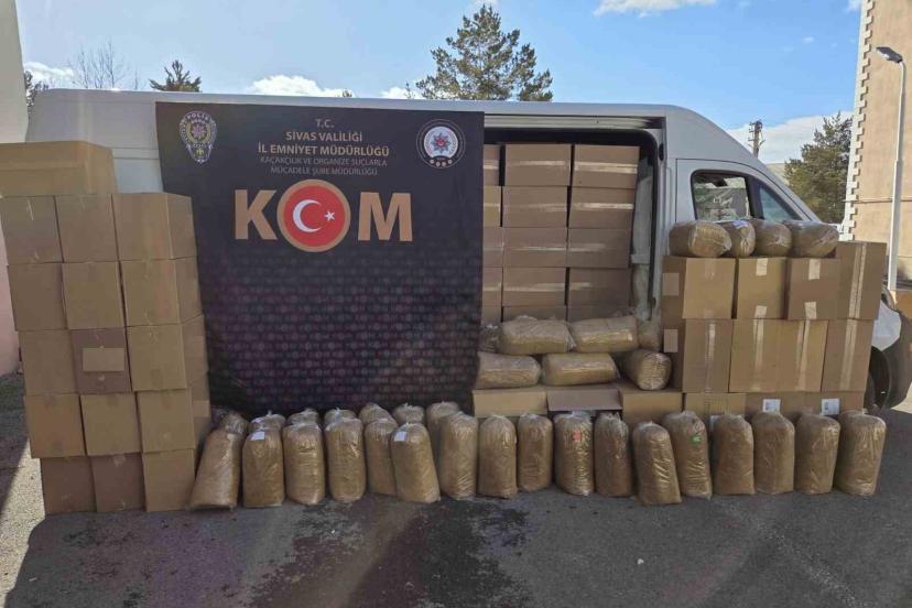 Sivas İl Emniyet Müdürlüğü Kaçakçılık ve Organize Suçlarla Mücadele Şube Müdürlüğü ekipleri ile İstihbarat Şube Müdürlüğü görevlileri tarafından, kaçakçılık faaliyetlerinin önlenmesine yönelik yürütülen çalışmalar kapsamında Sivas Cumhuriyet Başsavcılığı koordinesinde operasyon düzenlendi. Yapılan çalışmalar sonucu tütün ve tütün ürünleri kaçakçılığı yapıldığı tespit edilen bir araç ile bir yolcu otobüsü, adli makamlardan alınan arama kararına istinaden durdurularak arandı. Gerçekleştirilen aramalarda 840 bin mükerrer bandrollü boş makaron, 228 kilogram açık kıyılmış tütün, bin 570 paket gümrük kaçağı sigara, bin 445 adet gümrük kaçağı puro ve 250 gram puro tütünü ele geçirildi. Operasyon kapsamında yakalanan 3 şüpheli şahıs hakkında yasal işlem yapıldı. Emniyet tarafından yapılan açıklamada ise vatandaşların huzur ve güvenliğinin sağlanması, halk sağlığını tehdit eden ve devleti vergi kaybına uğratan kaçakçılık faaliyetleriyle mücadelenin azim ve kararlılıkla sürdürüleceğini belirtildi.