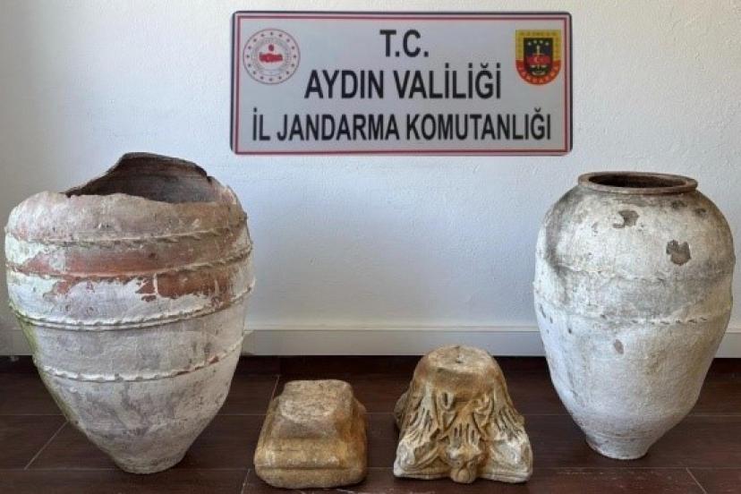 Edinilen bilgiye göre, Söke ilçesine bağlı Sarıkemer Mahallesi’nde S.B. (41) isimli şahsın ikametinde yapılan aramada, farklı dönemlere ait tarihi eserler ele geçirildi. Aramada, 2 adet Roma Dönemi’ne ait pithos, 1 adet Neolitik Dönem’e ait kaide (plint) taşı ile 1 adet Neolitik Dönem’e ait Korint başlığı taşı bulundu. Tarihi eser niteliği taşıyan parçalar muhafaza altına alınırken, şüpheli şahıs hakkında adli işlem başlatıldı.