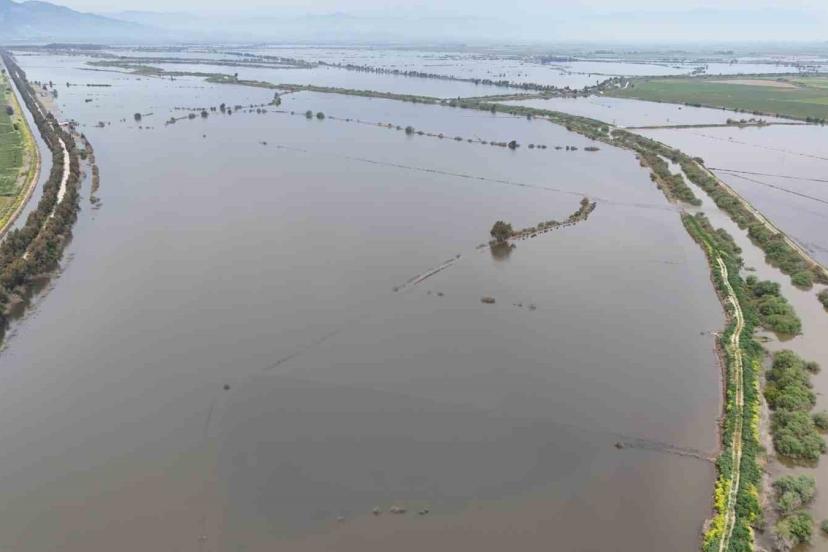 Yıllardır kuraklıkla mücadele edilen Söke ovası 2026 yılı yağışları sular altında kaldı. Geçen yıl suya hasret kalan ve Büyük Menderes Nehri bu yıl metrekareye yaklaşık bin 200 kilogram yağış düşünce suyu taşıyamayarak çeşitli bölgelerde patladı. Büyük Menderes Nehri’nin Söke Ovası’nda taşması sonucu sular altında kalan binlerce dönüm arazi adeta deniz görünümüne bürünürken, taşkının izleri dron ile havadan görüntülendi.
