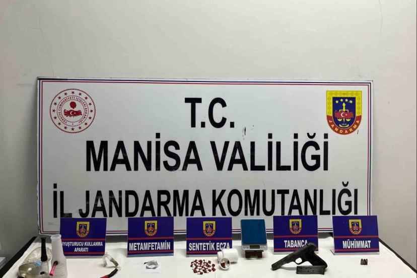 Soma İlçe Jandarma Komutanlığı ekiplerince uyuşturucu madde imal ve ticaretine karşı yürütülen çalışmalar kapsamında, 06 Kasım günü Ö.F.A. (E/26) isimli şahsın ikametinde arama yapıldı. Yapılan aramada 42 adet sentetik ecza, 2 gram uyuşturucu madde, 1 adet hassas terazi, 5 adet uyuşturucu kullanma aparatı ve 1 adet tabanca ele geçirildi.