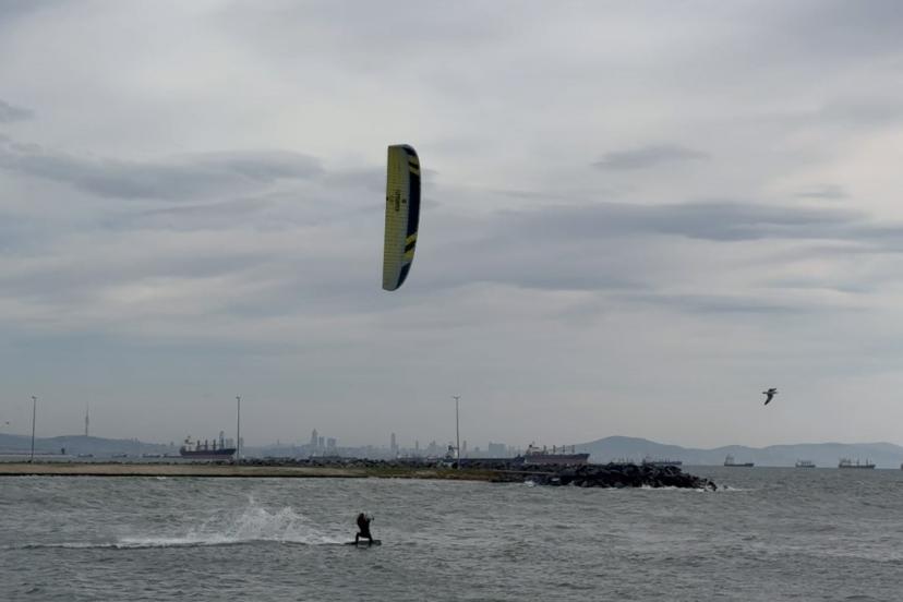 İstanbul’da etkili olan lodosu eğlenceye çeviren sörf tutkunları, Yeşilköy Sahili’nde uçurtma sörfünün tadını çıkardı. O anlar kameraya yansıdı.