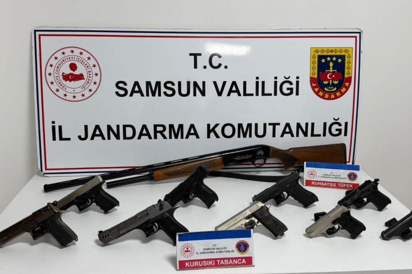 Samsun İl Jandarma Komutanlığı ekipleri tarafından yapılan çalışmalarda, sosyal medya platformlarında silahla havaya ateş ettikleri görüntüler tespit edilen 10 şahıs belirlendi. Ekiplerin şahısların evlerinde gerçekleştirdiği aramalarda 9 adet ruhsatsız kurusıkı tabanca ve 1 adet ruhsatsız av tüfeği ele geçirildi.