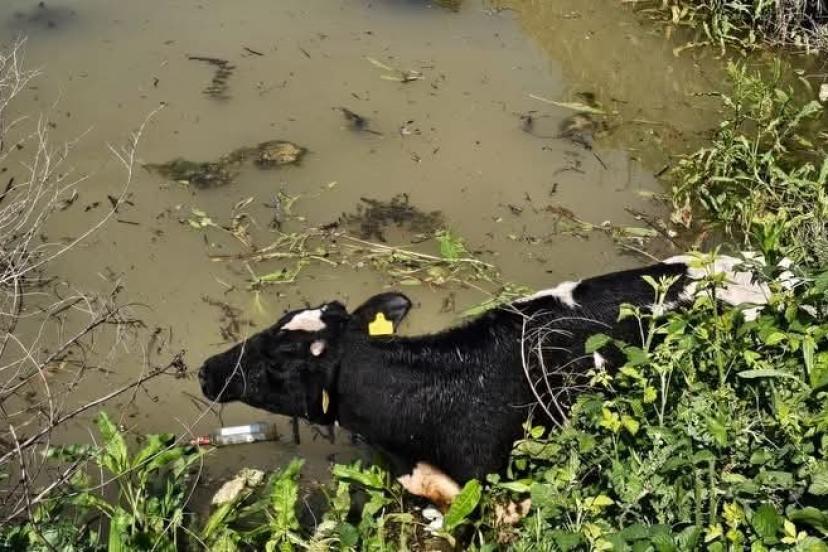 Su kanalına düşen inek itfaiye ekipleri tarafından kurtarıldı