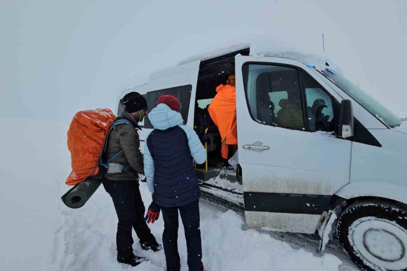 Bitlis’in Adilcevaz ilçesi sınırlarında bulunan Süphan Dağı’na tırmanış gerçekleştirmek isteyen bir grup dağcı, olumsuz hava koşuları nedeniyle Kışkılı Mahallesi’nde mahsur kaldı. Dağcıların yardım çağrısı üzerine Aydınlar Belde Belediyesi ekipleri hızla harekete geçti.